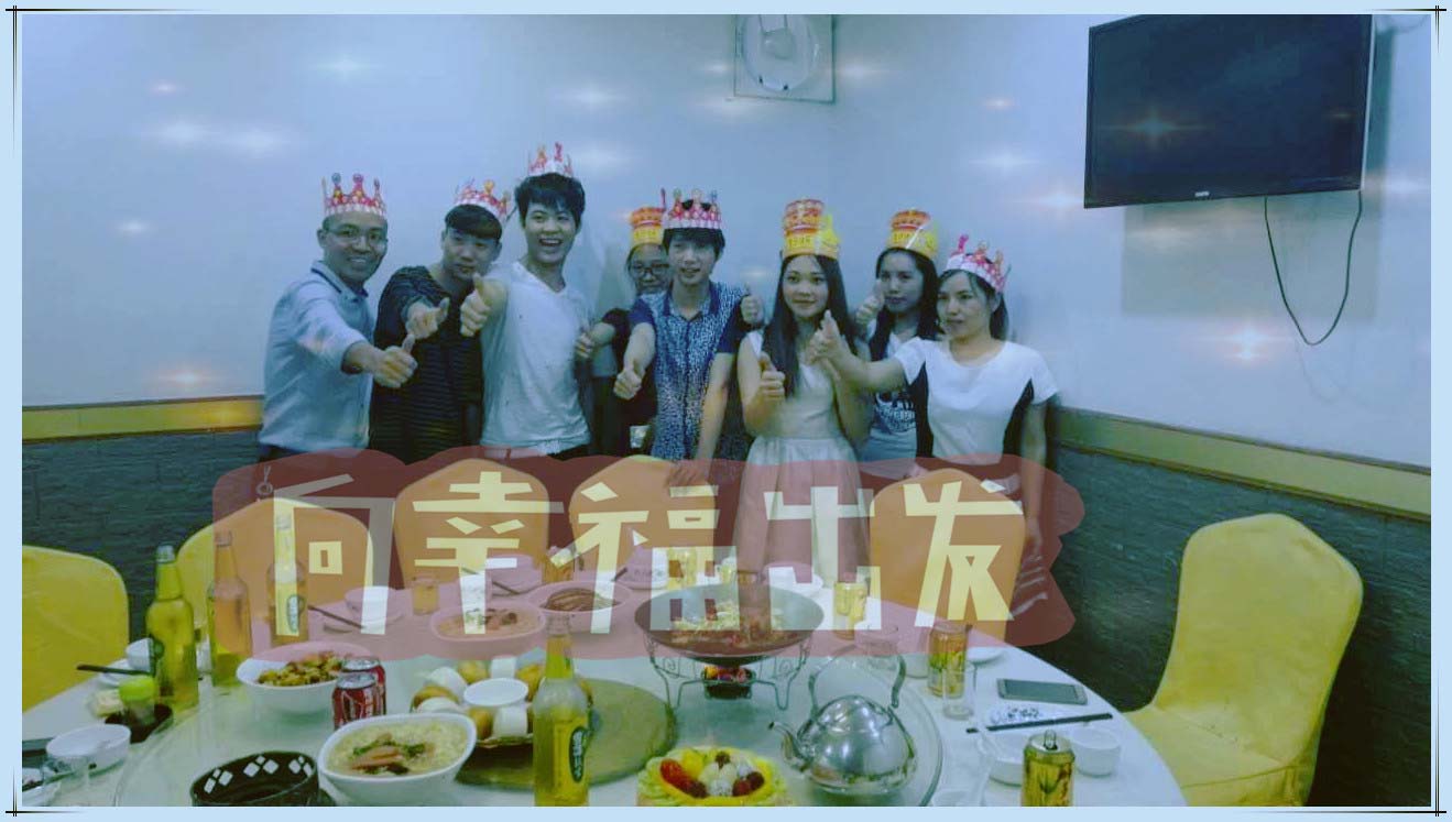 下午18:00,9位壽星在操場集合,奔向了晚宴現(xiàn)場。看著博皓電子為大家準備的那一桌子