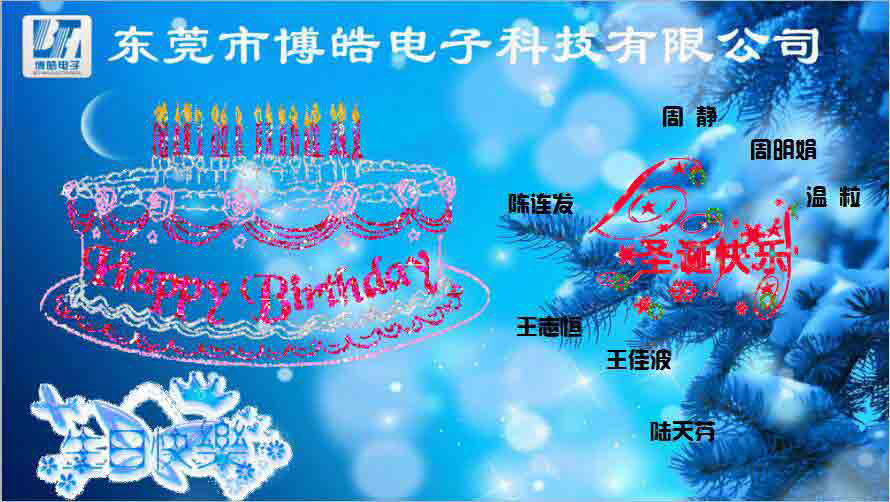 1224日晚上八點,博皓硅膠按鍵廠舉行了年終員工生日會。12月份壽星一共有7位,來自不同的硅膠生產部門。本次活動為2016年博皓電子舉行的12期生日會活動畫上了圓滿的句號。