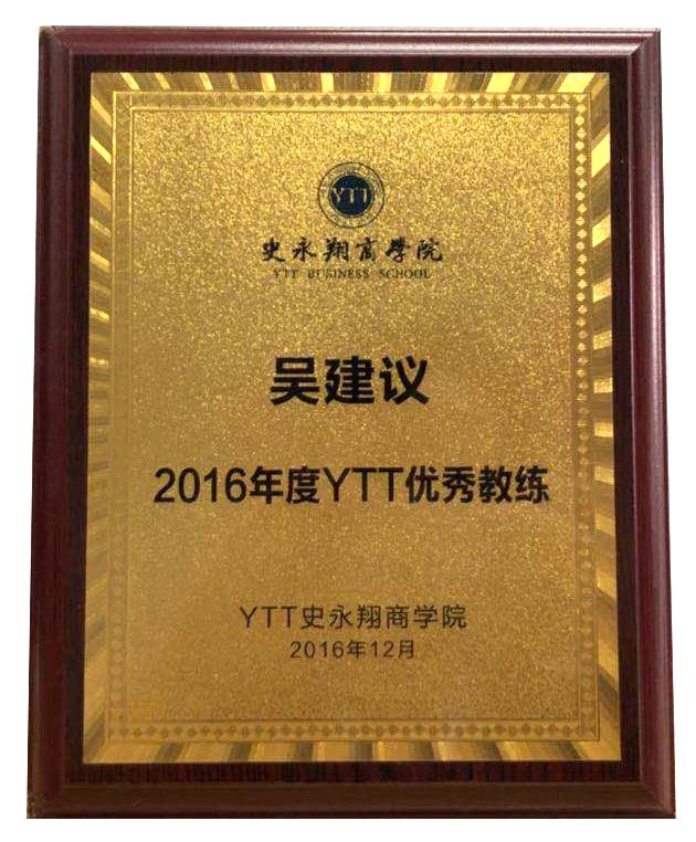 2016年度YTT優秀教練獎