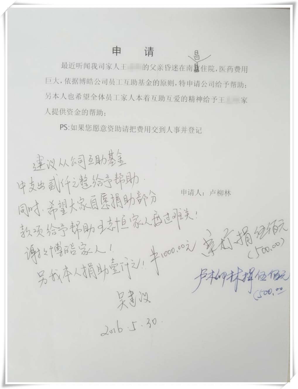 2016年6月伊始,大家都在為幸福生活忙碌之際,一個噩耗從天而降。博皓硅橡膠制品廠優秀員工小王的父親因隱球菌性腦膜炎在醫院昏迷不醒。此對于這個風雨飄搖的小家庭不異于雪上加霜。