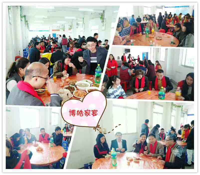 中午12點半,在"博皓大酒店",擺了12桌酒席!博皓的大廚已準備好了大餐,迎接開完年會的家人們!這也是博皓電子每年的傳統,全體員工跟家人一樣在家里吃個團圓飯!酒桌上,博皓全體家人們開懷暢飲,互相敬酒,互相祝福!相信在新的一年里博皓電子在硅膠定制行業一定可以再上一個新臺階!吳總.盧總.宗總更是紅包送不停,這頓午宴在一片歡聲笑語中結束了!