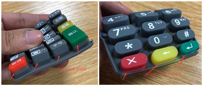 當然二次成型的成本要比一次成型高出不少,所以一般情況下如果按鍵安裝在機殼中,只要外露部分不會有串色情況就可以了,一般供應商能保證一次成型的串色標準是單個K的二分之一或三分之二以上沒有串色。
