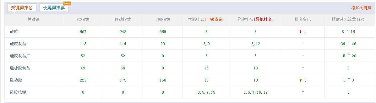 “硅膠制品、硅橡膠制品、硅膠制品廠、硅膠按鍵”是我們博皓核心產品關鍵詞,同時也是百度指數比較高的一些關鍵詞。說到這里小編就額外說一句,網站優化的定位很重要,如果定位錯了,后續再努力也是沒有辦法將權重提升至3的。