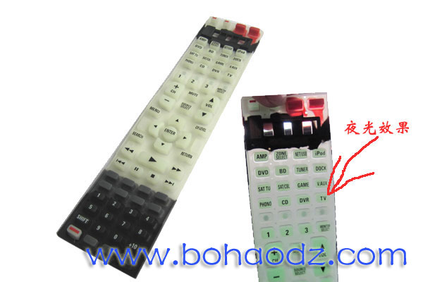 生產工藝:這種硅膠按鍵,除了采用傳統的生產工藝:成型、絲印、噴涂外,其主要特色是,在硅膠原料中加入了一定比例的熒光粉,使用按鍵在黑暗的環境下發出夜光。