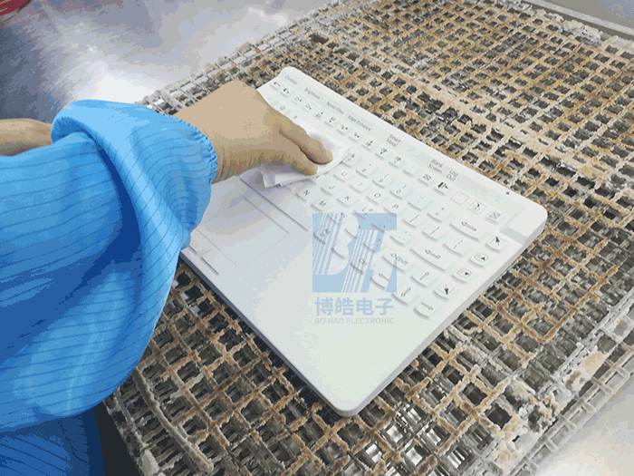 醫用硅膠鍵盤按鍵出紅外線烤箱后,需要進行表面清理,準備進入下一道工序。