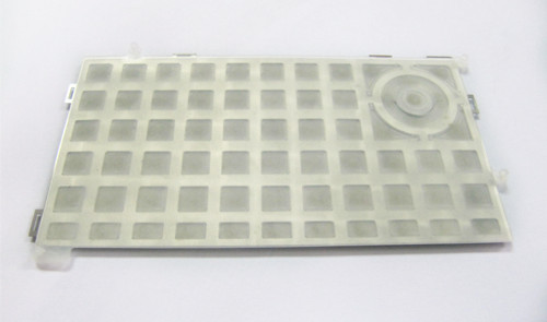 1.在塑膠和硅膠之間增加一層0.02mm后的鋼片,增加這種鋼片是取到整個鍵盤的按鍵帽的支撐作用。這是硅膠制品廠工程師參照舊的手機按鍵的設計結構結合客戶需求研發出的一款大面積多鍵帽組裝的一款電子詞典鍵盤。
