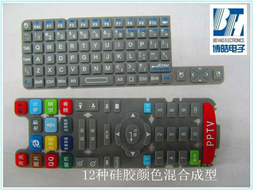 [采用12種顏色硅膠原材料制作而成的遙控器硅膠按鍵]