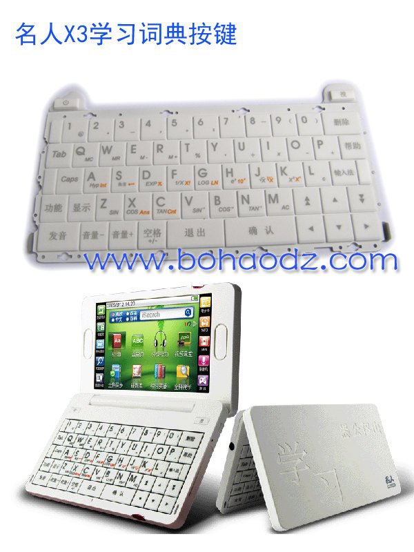 - 產品簡介:產品名稱:名人x3電子詞典按鍵(硅膠按鍵) 工藝說明:成型--絲印--噴油 電子按鍵定制生產項目周期: 報價:24小時內; 硅膠樣品模:3-5天,生產模:10-12天; 樣品:樣模OK后第五天出成品樣 大貨產能:5000-10000PCS/天 我們博皓電子服務的電子詞典按鍵客戶:名人、好記星、E人E本、禾維科技(品牌:文曲星) 博皓電子具備的工藝簡介:包括表面噴涂、背面印刷、雙色注塑、拉絲效果、電鍍+鐳射切割、濺鍍工藝、TPU+底硅膠、PC薄膜+底硅膠、加鋼片、IMD+塑料、IMD+硅膠、Co-moulding、UV轉印十三道工序